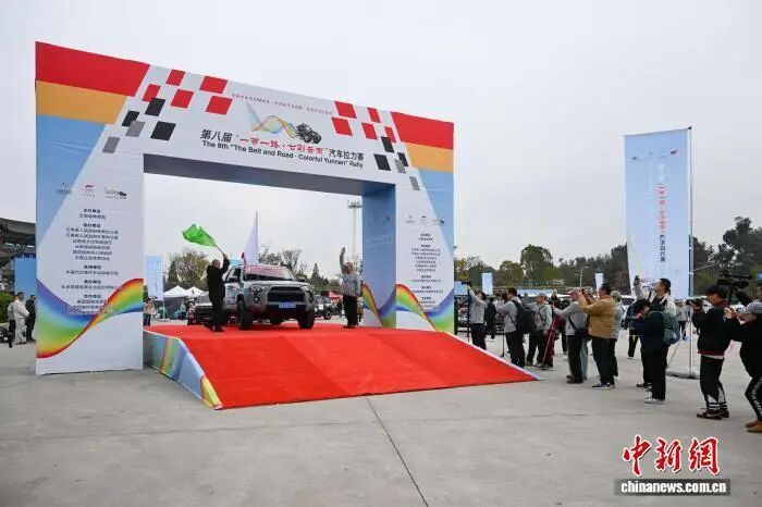 11月24日,第八屆“一帶一路?七彩云南”汽車?yán)愒诶ッ靼l(fā)車。李嘉嫻 攝