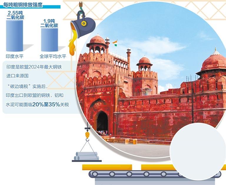 印度的關(guān)切集中在碳關(guān)稅對(duì)本國(guó)鋼鐵行業(yè)等高碳產(chǎn)業(yè)的沖擊。印度鋼鐵企業(yè)仍然主要依賴燃煤煉鋼,印度每噸粗鋼的排放強(qiáng)度為2.55噸二氧化碳,高于全球平均水平1.9噸二氧化碳。同時(shí),印度國(guó)內(nèi)鋼鐵行業(yè)占印度溫室氣體排放量的12%,歐盟實(shí)施“碳邊境稅”將使印度對(duì)歐盟鋼鐵出口面臨每噸約290美元的額外成本。根據(jù)歐盟統(tǒng)計(jì)局發(fā)布的數(shù)據(jù),2024年,印度對(duì)歐盟市場(chǎng)鋼鐵產(chǎn)品的出口量達(dá)到430萬(wàn)噸,約為39億歐元,印度是歐盟2024年最大的鋼鐵進(jìn)口來(lái)源國(guó)?!疤歼吘扯悺钡膶?shí)施將直接增加印度相關(guān)產(chǎn)品的出口成本,印度出口到歐盟的鋼鐵、鋁和水泥可能面臨20%至35%的關(guān)稅,這對(duì)印度而言損失很大。